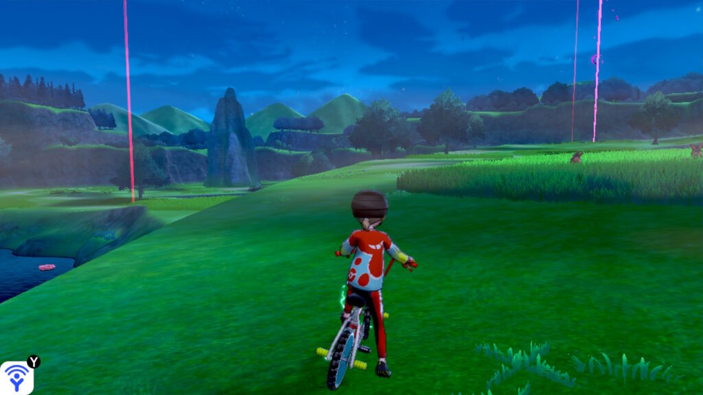 見たところ豪雨どころか雨の一滴も落ちてきませんね。でもワイルドエリアは小エリアごとに天気が細かく変化するので、色々と回ってみるべく周りを見渡しました。