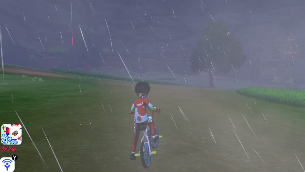 とメニューを開いたところ、ワイルドエリアにて豪雨発生中の文字が目に入りました。
