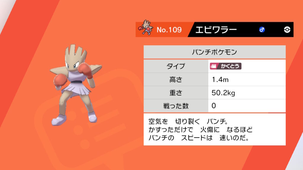 エビワラーはパンチポケモンと書いてあり、ビジュアルもパンチが特技っぽいし説明にもパンチがあります。