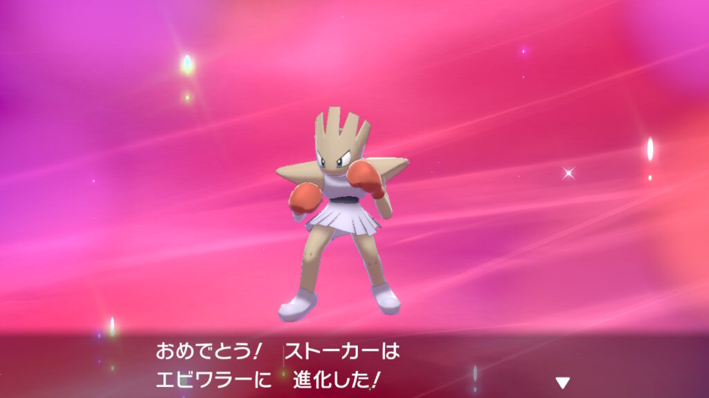 エビワラーの進化先がカポエラーだと思っていたのですが、どうやらバルキーから分岐してカポエラーとエビワラーに進化するようです。
