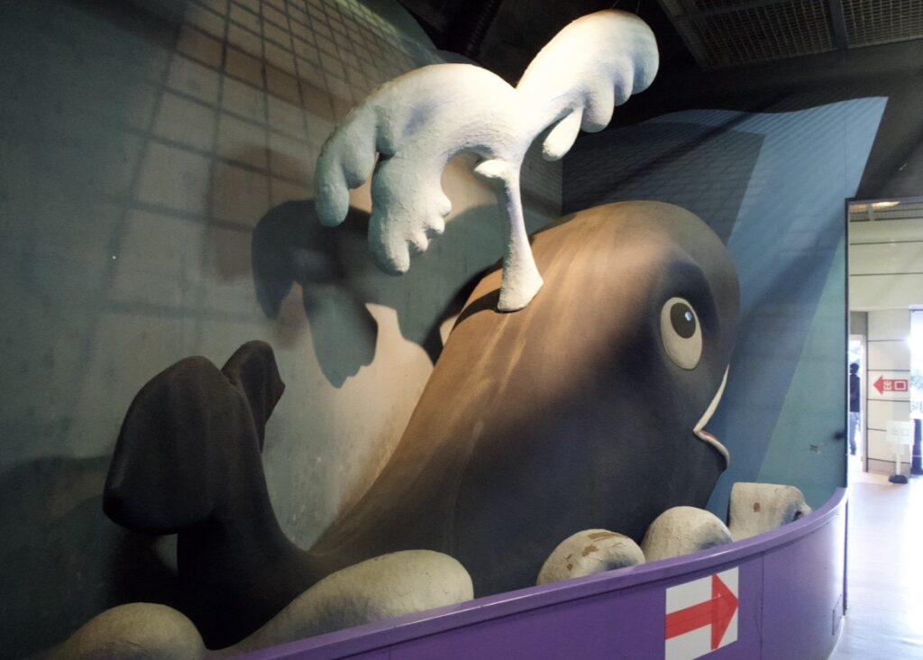 一方通行で通路が決まっているのですが、反対側を見ると不思議なくじらがいました。