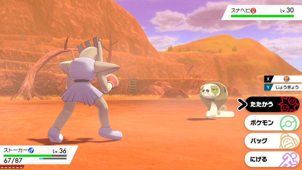 再びスナヘビがのろりと歩いていたので、戦闘しがてら捕獲することにします。