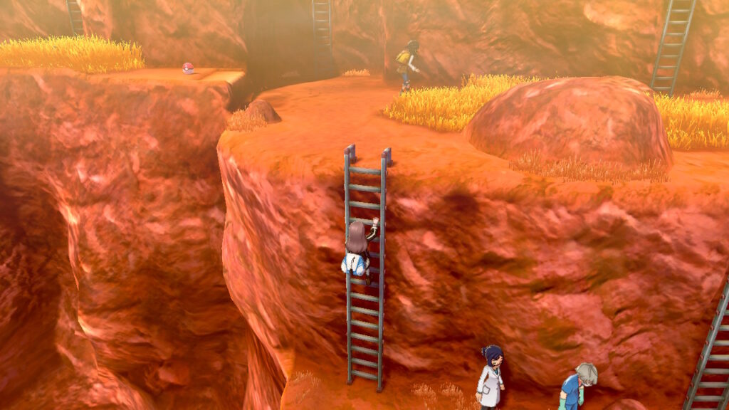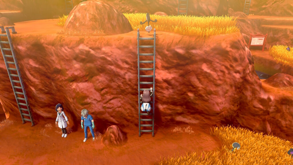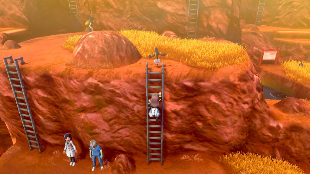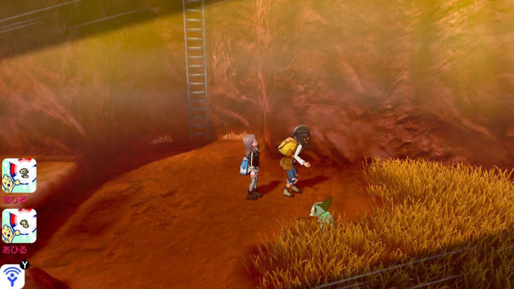 手前側の梯子を登ろうと思いましたが、なんだかハシゴの登り口でポケモンがスタン張っていますので、一旦諦めて左の梯子へ向かいます。