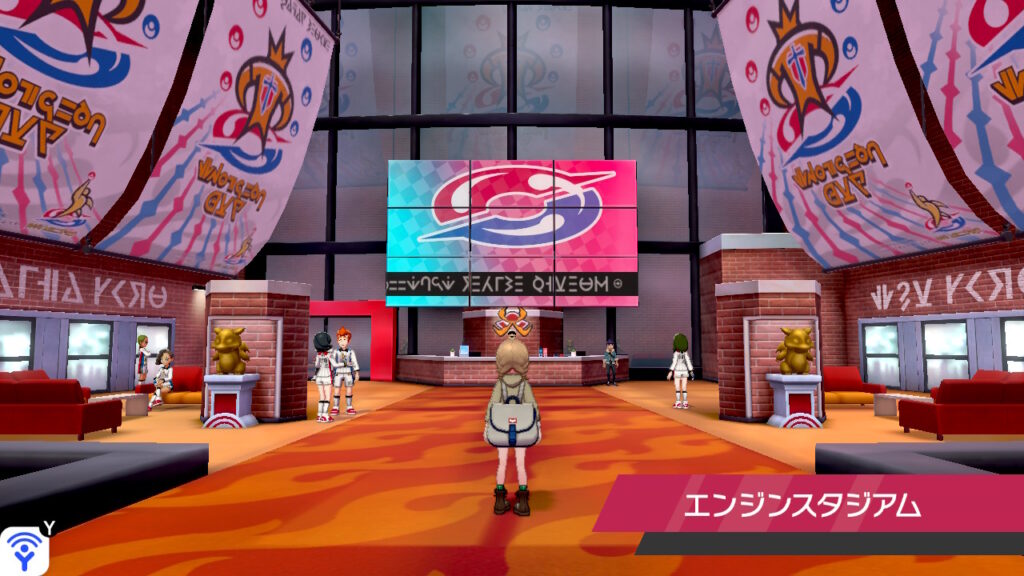正面の受付にホップさんが立っていますね。