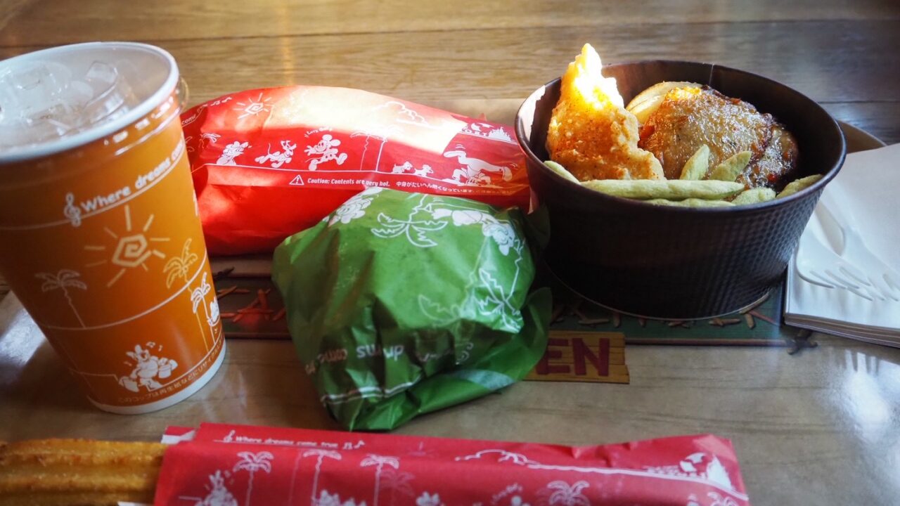 試しにモバイルオーダーを見てみると、幸いまだどこにも空きがありました。早速ごはんも時間指定でオーダー。チキンが食べたかったのと、エレクトリカルパレードの地蔵中に寒くなることを想定して、夜にピザ、ホット紅茶をオーダーしました。