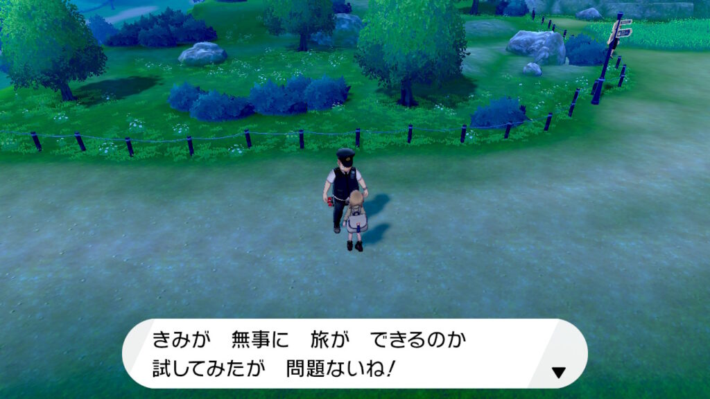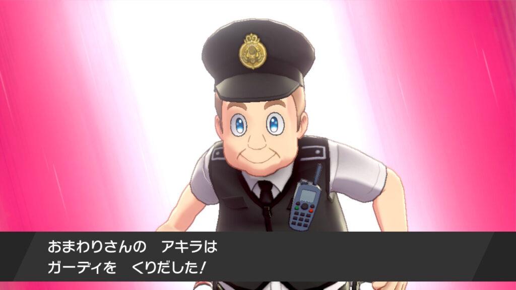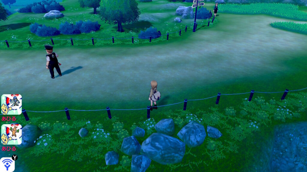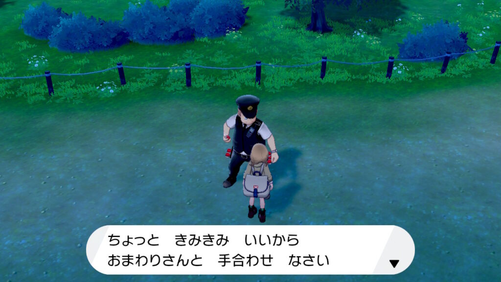 マダムとのひと時を楽しみ、ポケカブを捕獲し。ハナサカハチ(ウリムー)を堪能し、ようやく先へ進むと、お巡りさんが巡回をしていました。
