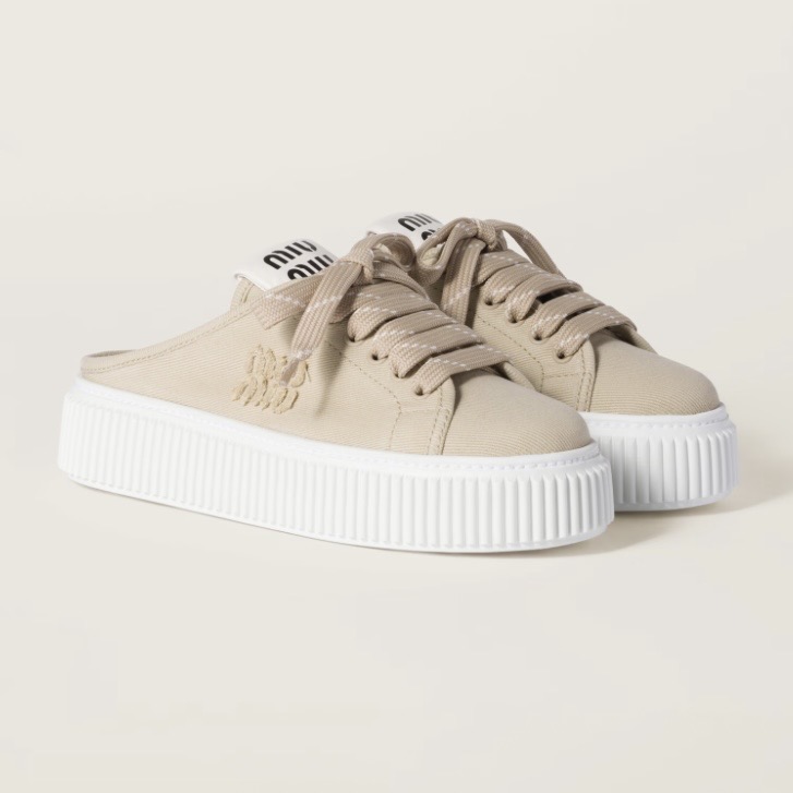 これも今流行っている感じかなと思いきや、よく見るとデニム生地なのがなんかいい。スニーカーなのにミュールって脱ぎ履きしやすくて履き心地も良さそう~~